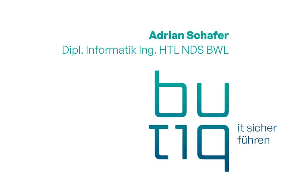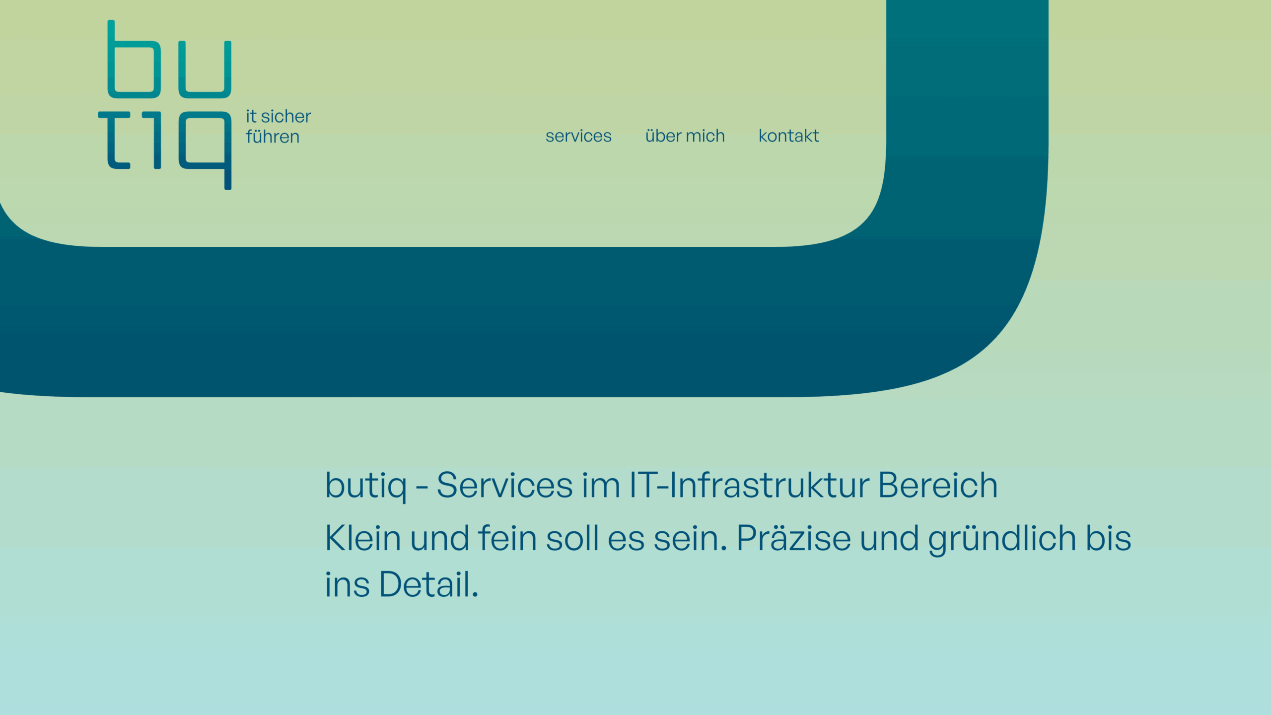 Naming: In Zusammenarbeit mit André Kesper, Kesper Wegelin AG wurden auf der Grundlage des Markenfilters Namensalternativen wie verschiedene Claims entwickelt. Am Ende dieses Prozessschrittes kristallisierte sich die Namensgebung heraus: butiq – it sicher führen.