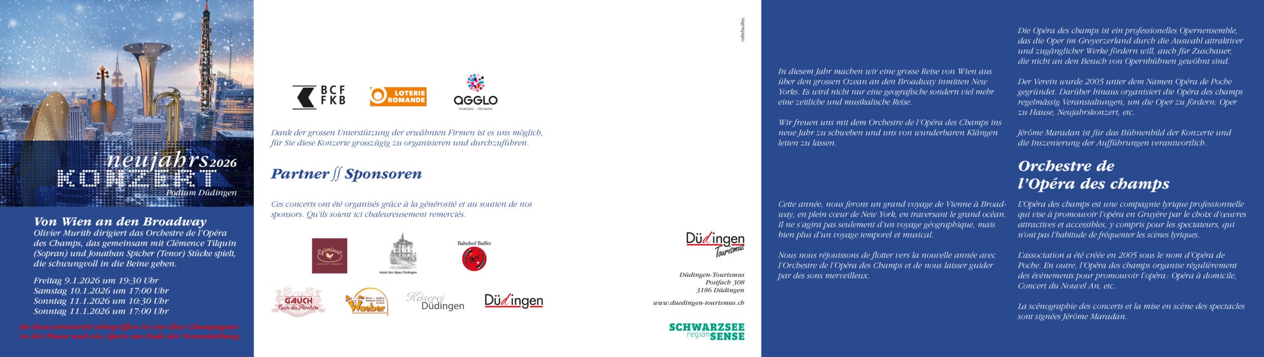 Das Neujahrskonzert ist ein jährlich wiederkehrender Anlass, der durch Düdingen Tourismus durchgeführt wird. Diesen begleiten wir seit 2013.