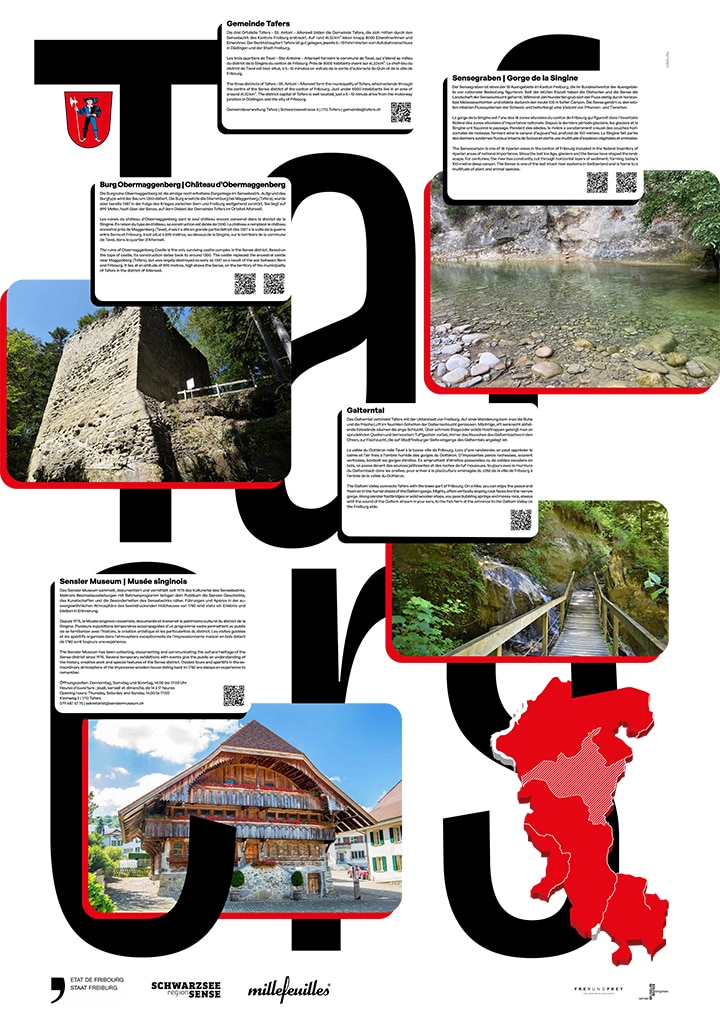 Das Sensler Museum realisierte in Kooperation mit Schwarzsee-Sense-Tourismus eine Wanderausstellung mit nachhaltigen Nutzungsmöglichkeiten im Rahmen der Museumsnacht. Dabei handelte es sich um 16 Plakate, welche Kulturorte, touristische Angebote und Naherholungsdestinationen der 16 Sensler Gemeinden vorstellen.